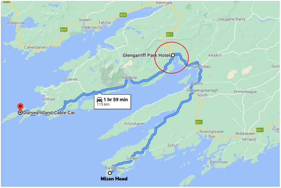 We stayed in Glengarriff since it’s in between Mizen Head and Dursey. There are umpteen hotels and BNB’s to choose from. Bantry is also a suitable alternative.