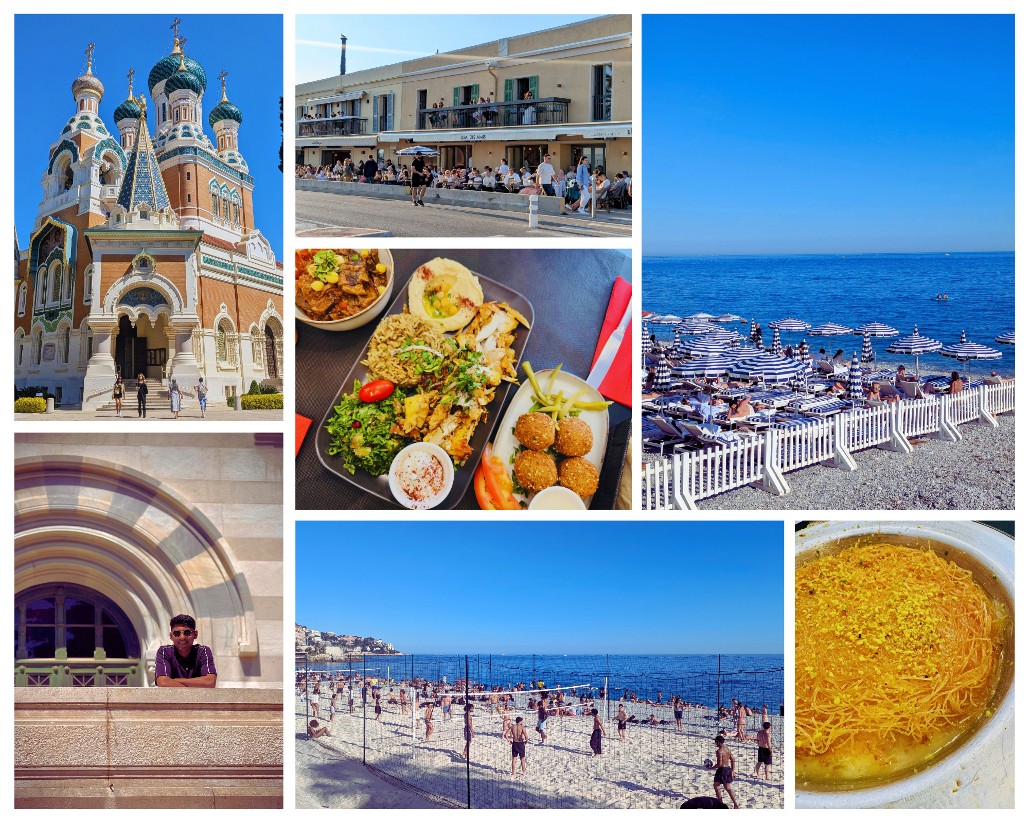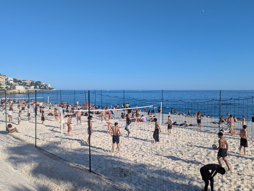 The afternoon was spent soaking up the vibrant atmosphere of the Promenade des Anglais and the bustling Cours Saleya market. The beach vibes were infectious, with people playing football, volleyball, swimming in the warm waters, sunbathing, and leisurely strolling along the promenade.